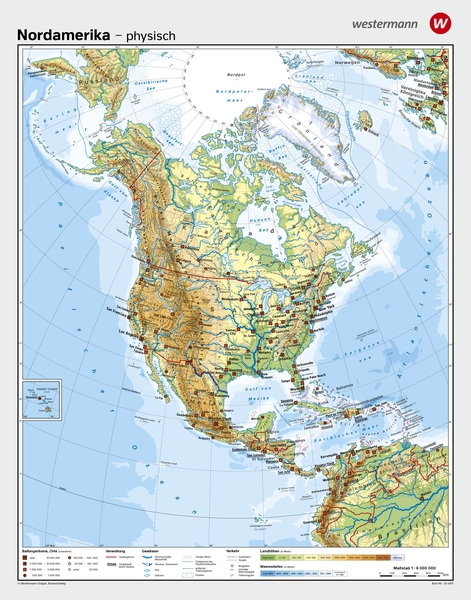 Die Schulwandkarte "Nordamerika" des Verlags Westermann ist eine herausragende Ressource für Bildungseinrichtungen, die einen tiefgreifenden Einblick in die geografischen und politischen Landschaften Nordamerikas bieten möchten. Diese Karte, die Nordamerika auf der Vorderseite in physischer und auf der Rückseite in politischer Darstellung zeigt, ist ideal für eine breite Palette an Lehrmöglichkeiten konzipiert.