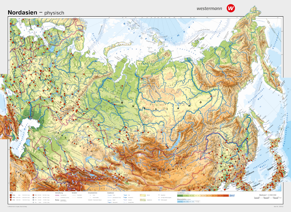 Die Schulwandkarte "Nordasien" des Verlags Westermann ist ein umfassendes Lehrmittel, das speziell dafür entwickelt wurde, Lehrkräften und Schülern eine detaillierte geografische und politische Übersicht über die Region Nordasien zu bieten. Diese doppelseitige Karte zeigt auf der Vorderseite eine physische und auf der Rückseite eine politische Ansicht, wodurch sie ideal für den Bildungseinsatz in einer Vielzahl von Schulformen geeignet ist.