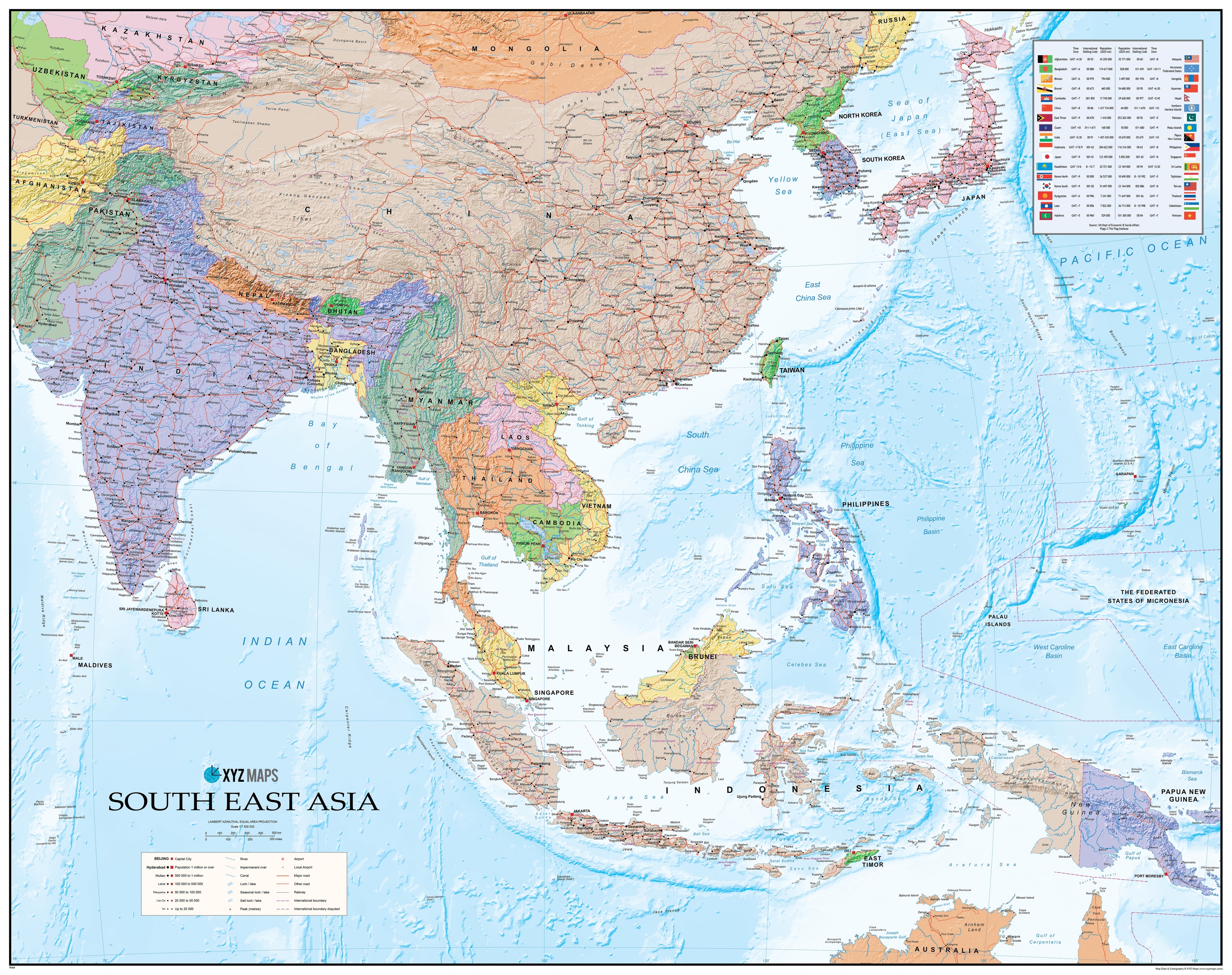 Südost Asien – Politische Wandkarte 120 × 95 cm (1:7.500.000)