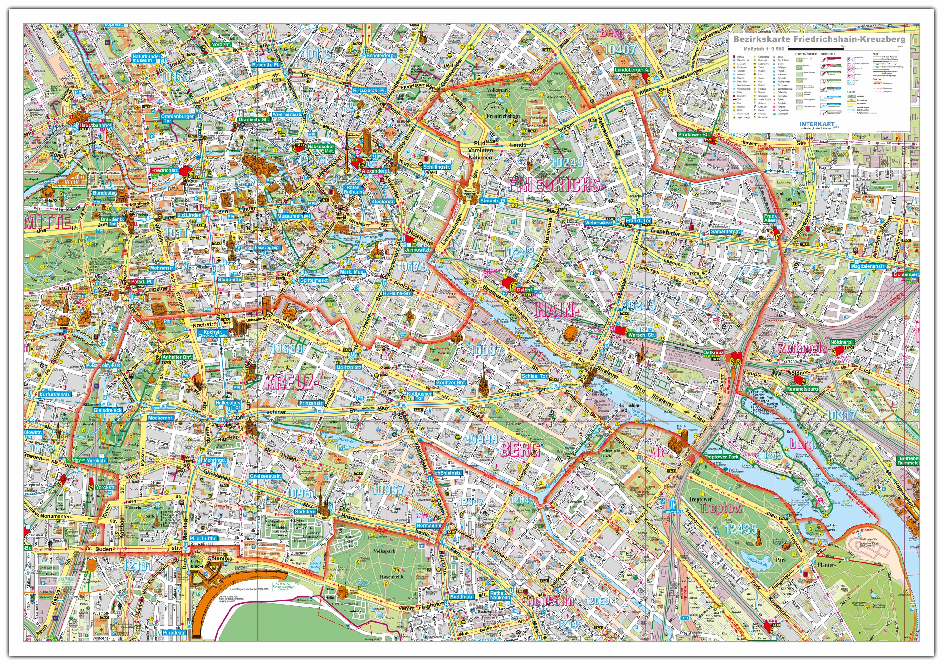 Friedrichshain-Kreuzberg – detailreicher Stadtplan 100 × 70 cm (Maßstab 1:9.500)