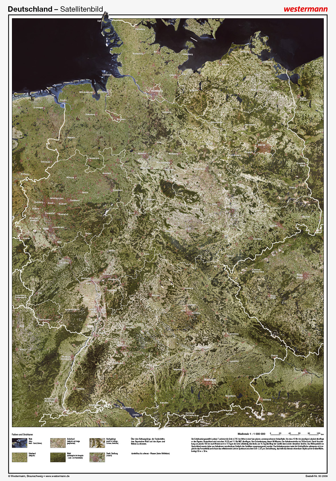 Deutschland - Posterkarte - Satellitenbild (70 x 100 cm / 1:1.000.000)