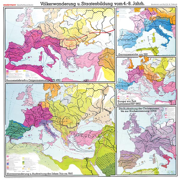 Völkerwanderung und Staatenbildung vom 4. bis 8. Jahrhundert - Schulwandkarte (200 x 205 cm)