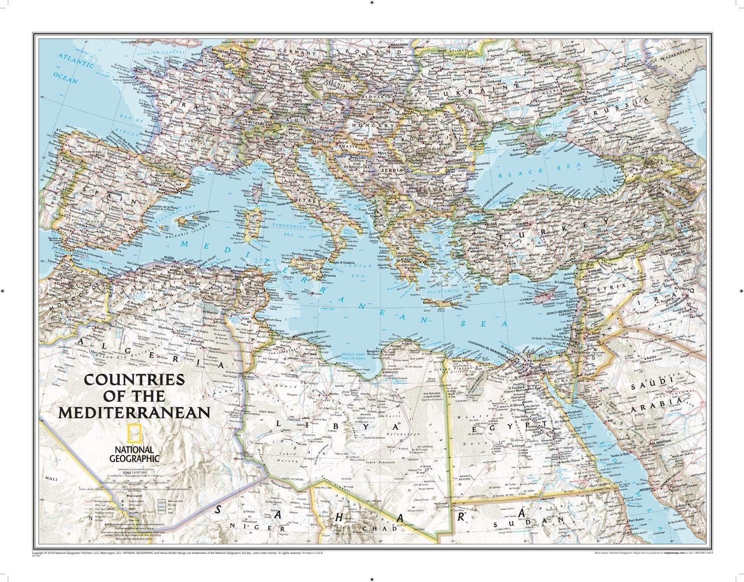 Ob für die Urlaubsplanung, den Unterricht oder als Wandschmuck – die Mittelmeerländer Karte politisch 77 × 66 cm bringt die Vielfalt der Region auf einen Blick an Ihre Wand.