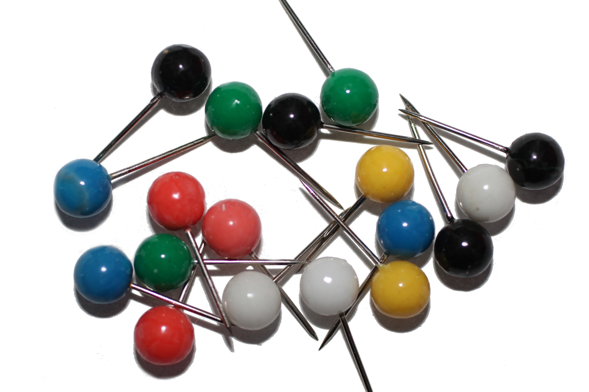 Lieferumfang: 100x Markiernadeln (Kugel), Kopf Ø ca. 5 mm, Nadellänge ca. 16 mm, in der gewählten Farbe bzw. farbig gemischt.