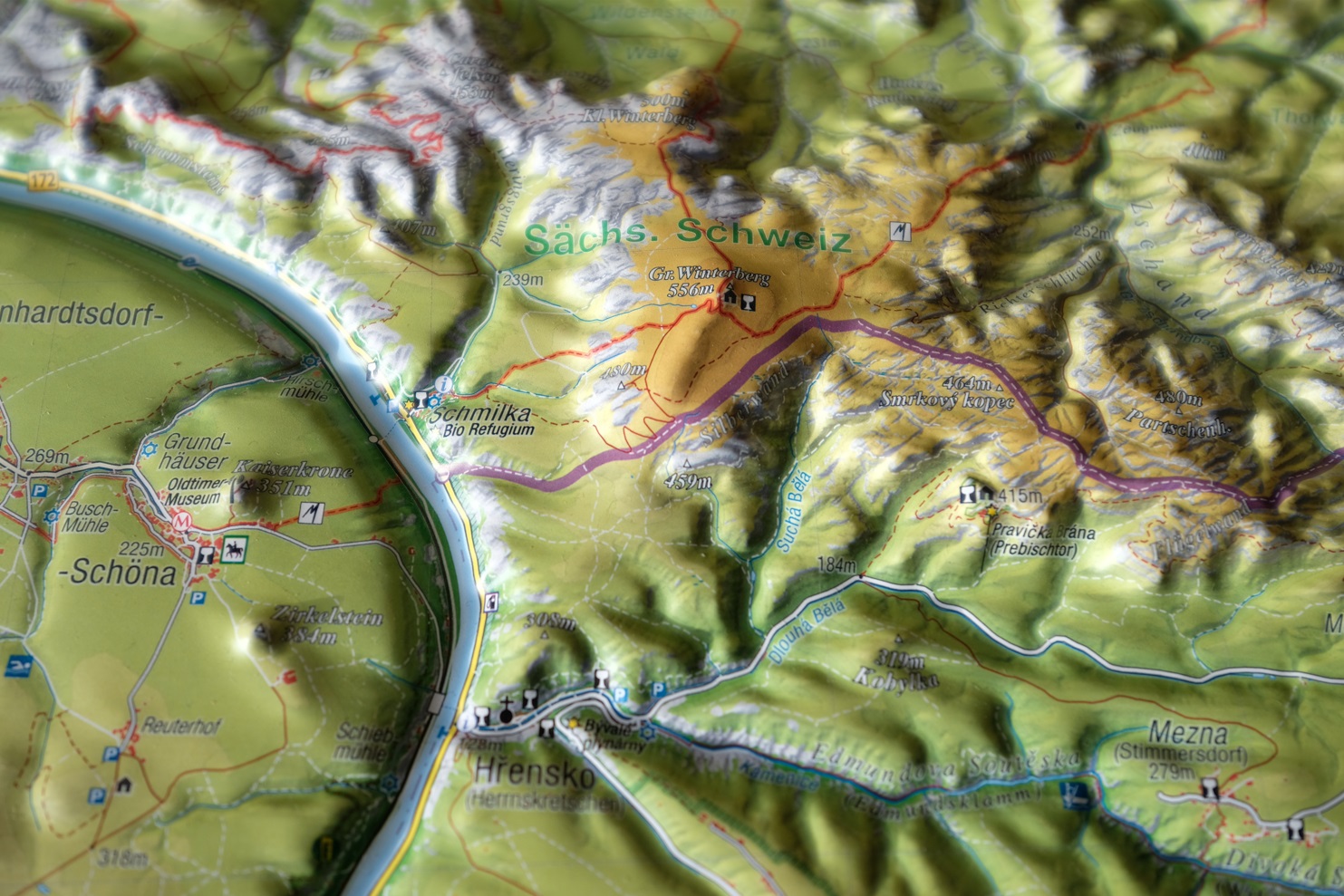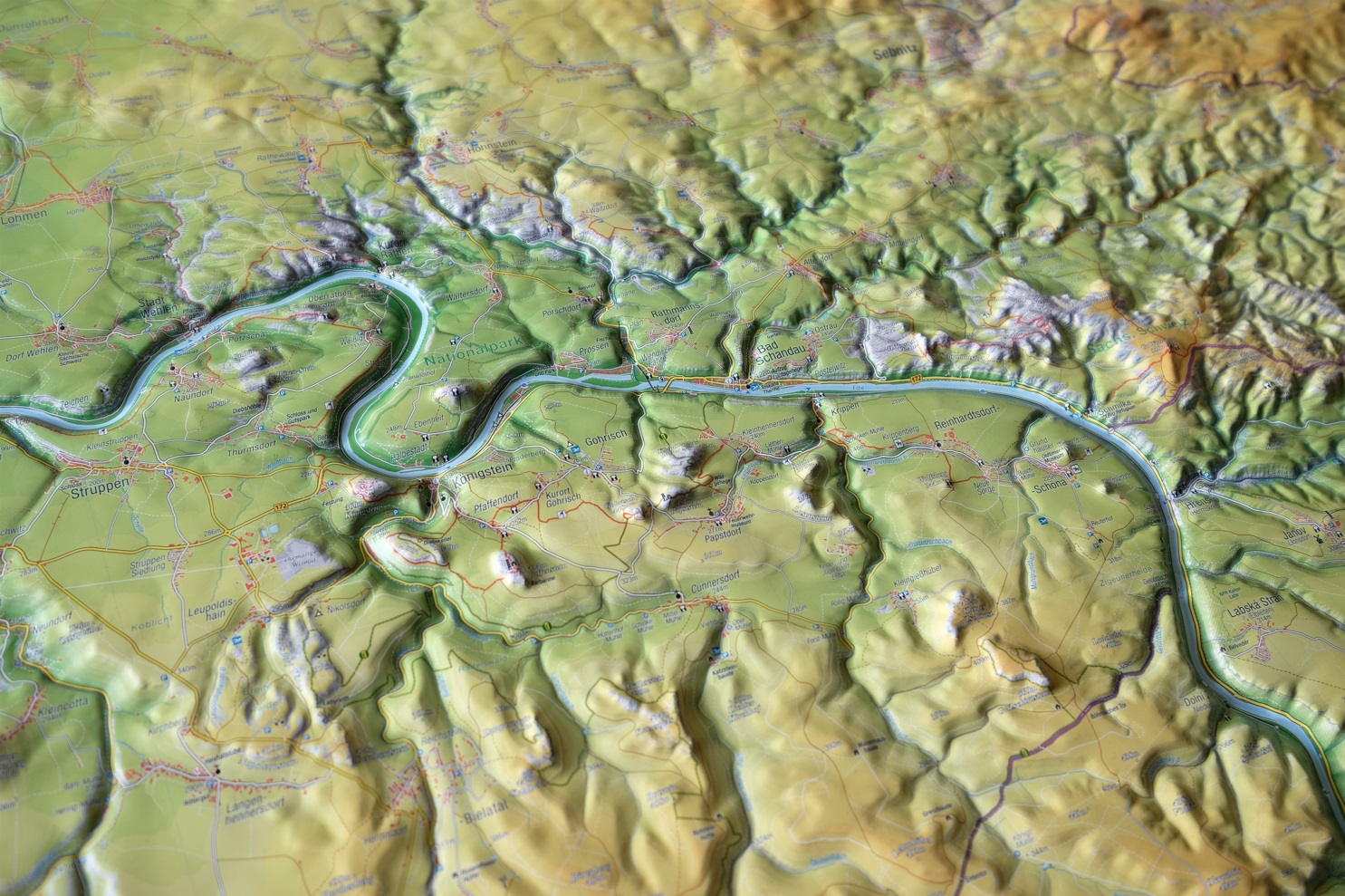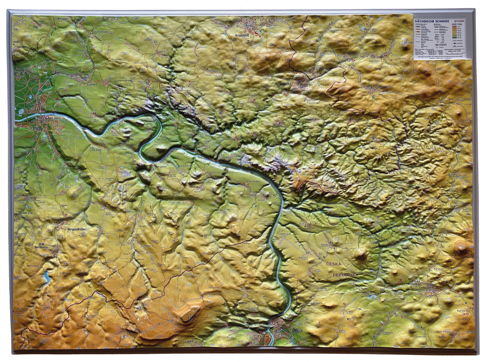 Sächsische Schweiz – 3D-Reliefkarte groß (1:55.000, 77 × 57 × 1,5 cm)