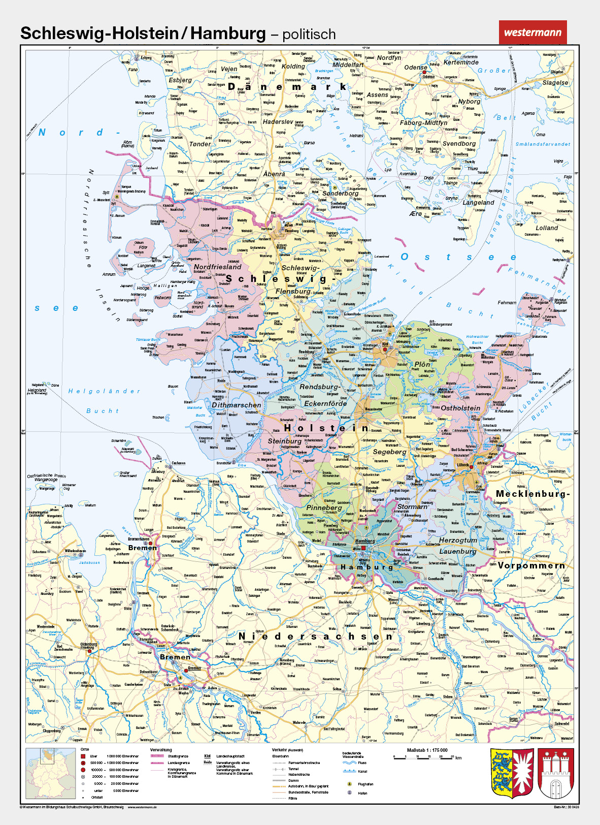 Schulwandkarte "Schleswig-Holstein / Hamburg" von Westermann
