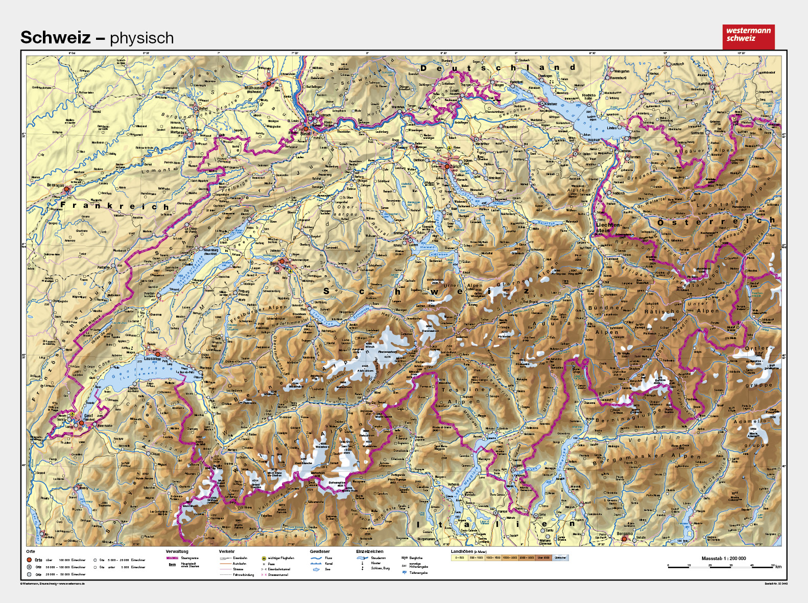 Die "Schweiz physisch" Schulwandkarte ist ein ideales Lehrmittel für alle Bildungseinrichtungen, die Wert auf eine fundierte geografische Bildung legen. Sie ist besonders geeignet für den Einsatz in Fächern wie Erdkunde und Geografie, bietet aber auch in anderen schulischen und außerschulischen Lernkontexten wertvolle Dienste. Lehrkräfte können die Karte nutzen, um die physischen Aspekte der Schweizer Geographie anschaulich zu machen und somit das Interesse und Verständnis der Schüler zu fördern.Vielseitige Nutzungsmöglichkeiten