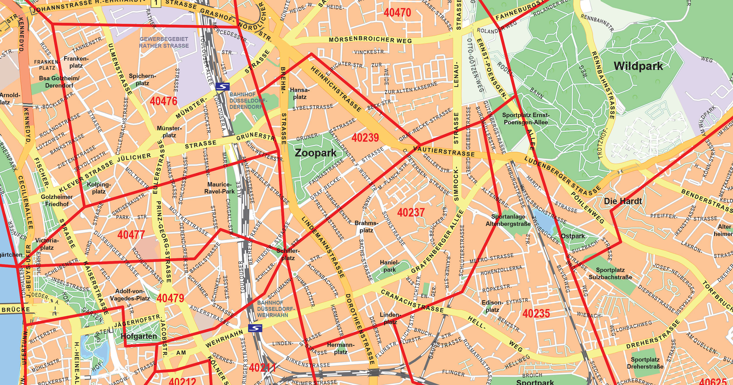 Stadtplan Düsseldorf mit Postleitzahlen – präzise Orientierung im Quadrat