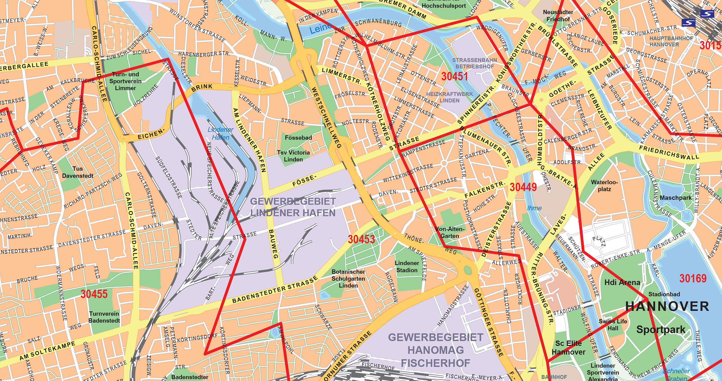 - Gewässer & Grünflächen: Leine, Maschsee, Kanäle, Park- und Freizeitflächen für schnelle Orientierung.
