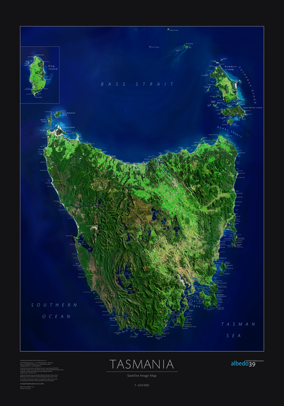 Tasmanien – Satellitenkarte 70 × 100 cm (Maßstab 1:650.000)