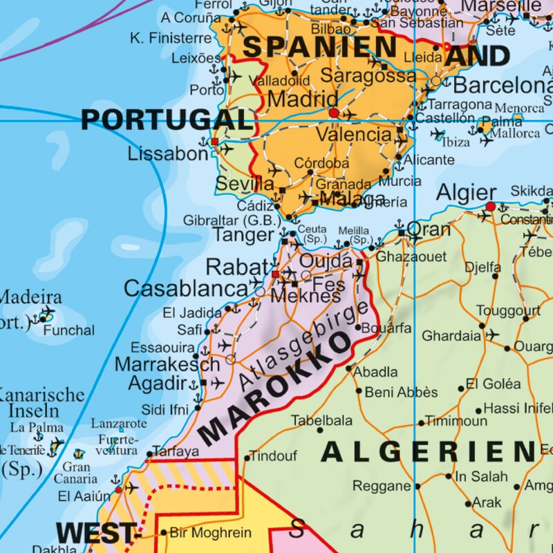 - Didaktisch stark: Politik, Ozeanografie, Relief und Zeitzonen auf einem Blatt – perfekt für Schule und Weiterbildung.
