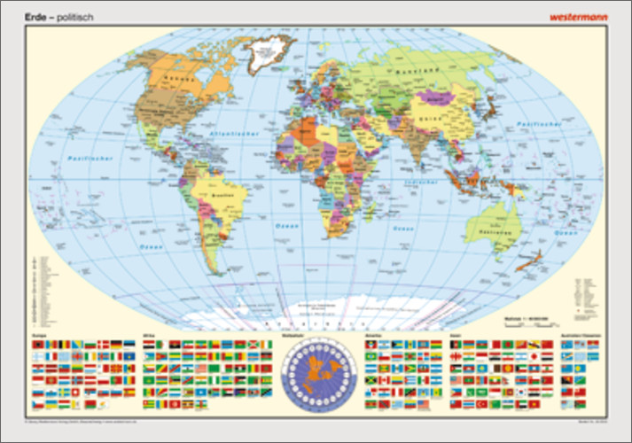 Die politische Karte zeigt die Staatsgrenzen, Hauptstädte und wichtige Städte weltweit. Sie bietet eine hervorragende Grundlage, um das Verständnis für geopolitische Zusammenhänge zu fördern und aktuelle weltpolitische Themen im Unterricht zu integrieren.